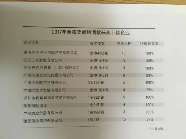 2017年第九届金樽颁奖典礼上,《葡萄酒杂志》评选出了获奖十家企业,在这十个企业名字中,有比爱醇历史悠久的,有比爱醇知名度高的,但是我们很骄傲,爱醇获得3金、1银、1铜,也是获奖最多的进口商!