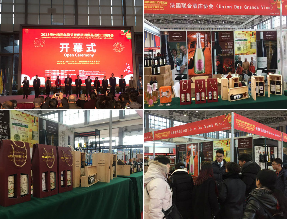 为期5天的贵州精品年货节博览会于2018年1月28日圆满闭幕,本届精品年货节由贵州省贸促会、贵州省归国华侨联合会联合举办,展销面积共20000平方米,将设置600个世界标准展位和特装展位,是贵州举办的首届世界性精品年货节。除了有贵州、广州、云南、山东、北京等国内多地的企业参展外,还有来自美国(贵州)商会、法国(贵州)商会、南非(贵州)商会的会员企业参展。已有700多家境内外企业参展,展品数量超越1万余种。在这次展会上爱醇不仅带去了1855年的名庄拉图嘉丽、佳的美、1855二级庄男爵副牌狮鹫、圣代美隆列级庄菲比富爵、1855年苏岱产区一级庄拉芙佩拉、勃艮第拿破仑最喜欢的香波檀,还有性价比超高适合干杯的波尔多红酒,以下是5天博览会的精彩瞬间。